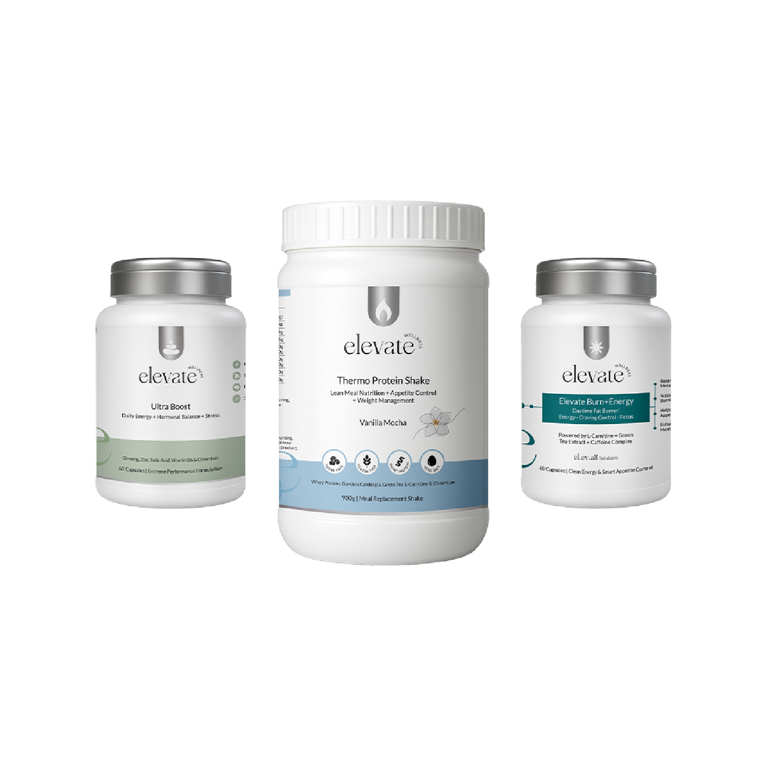 - Elevate Thermo Protein Shake provides sustained nutrition, appetite control, and metabolic support.